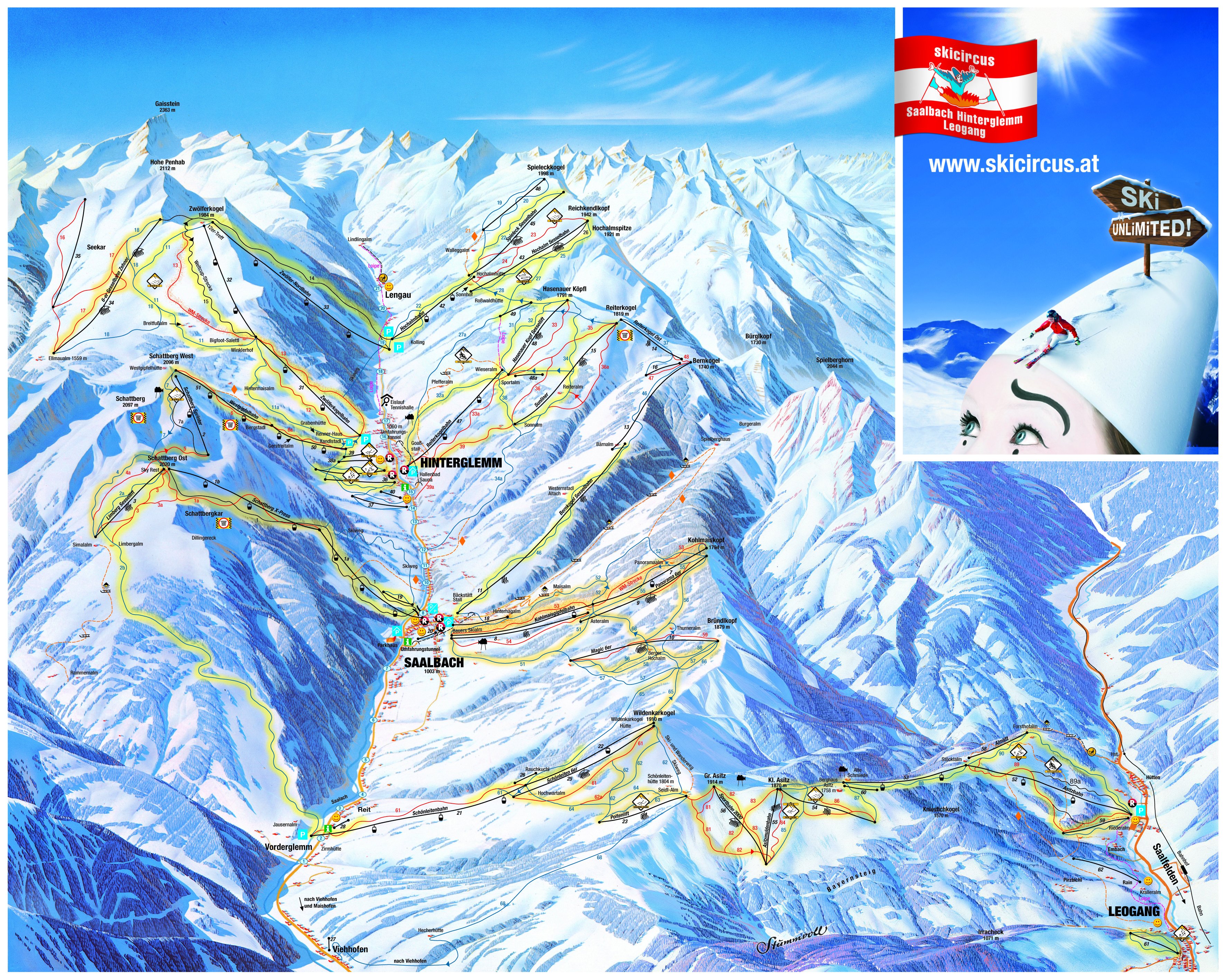 Туристическая карта Заальбаха - карта, на которой представлены памятники архитектуры страны, места отдыха, музеи, театры, кафе и рестораны.