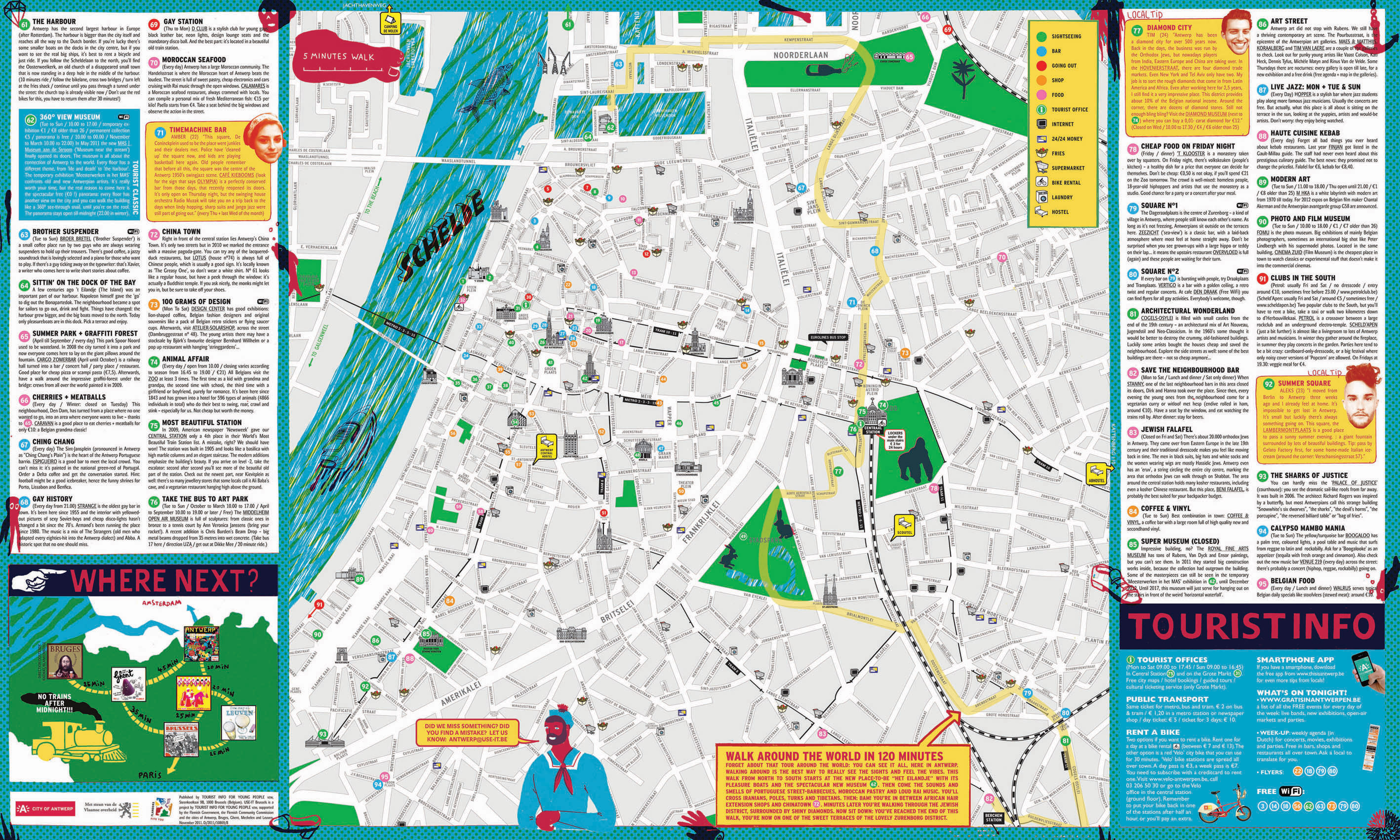 Туристическая карта Антверпена - карта, на которой представлены памятники архитектуры страны, места отдыха, музеи, театры, кафе и рестораны.