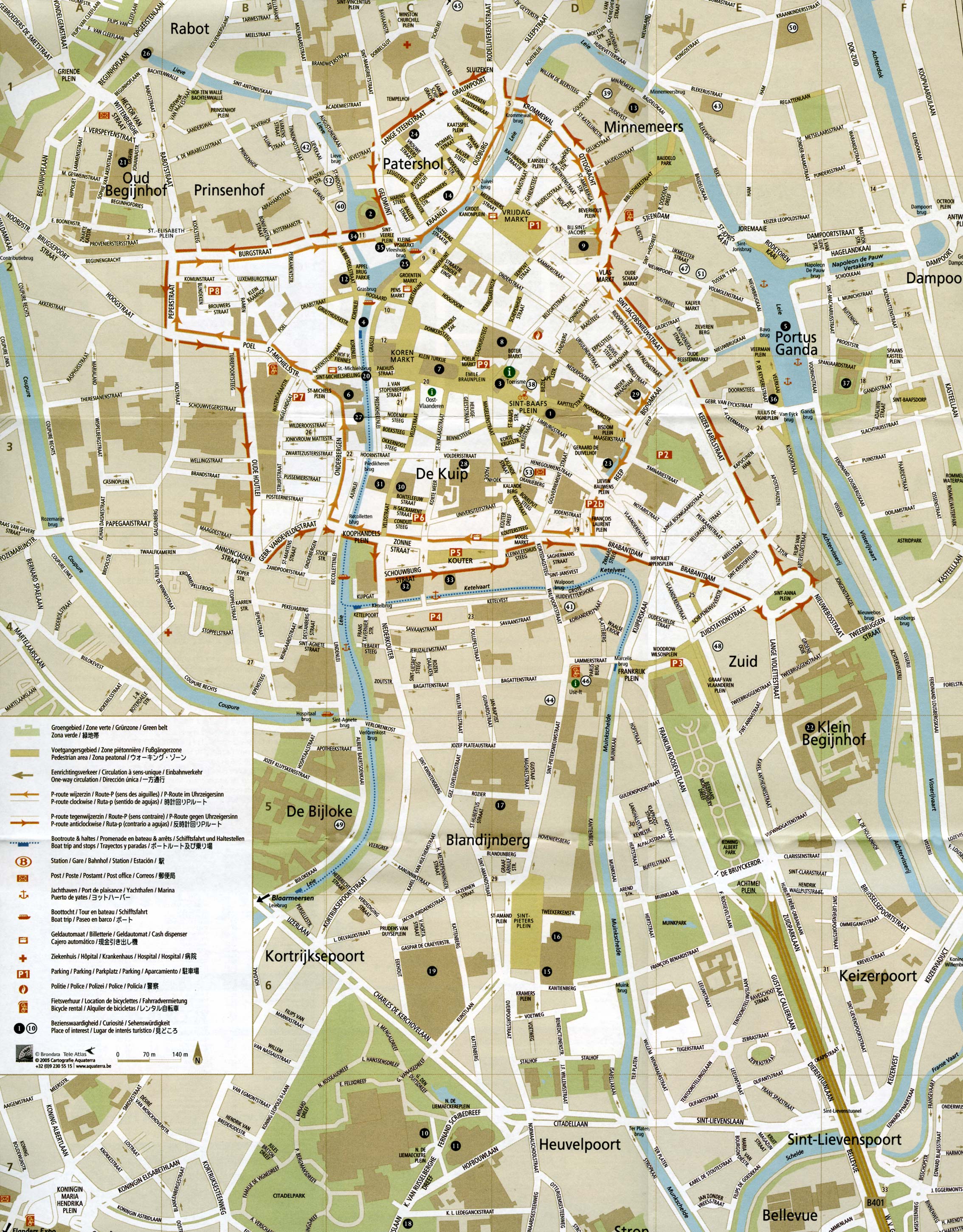 Туристическая карта Гента - карта, на которой представлены памятники архитектуры страны, места отдыха, музеи, театры, кафе и рестораны.