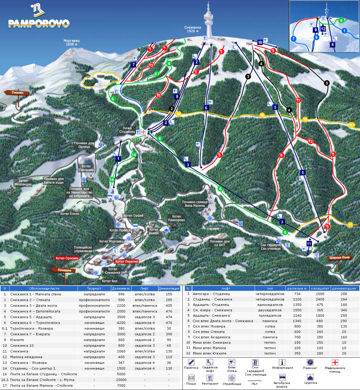 Туристическая карта Пампорово - карта, на которой представлены памятники архитектуры страны, места отдыха, музеи, театры, кафе и рестораны.