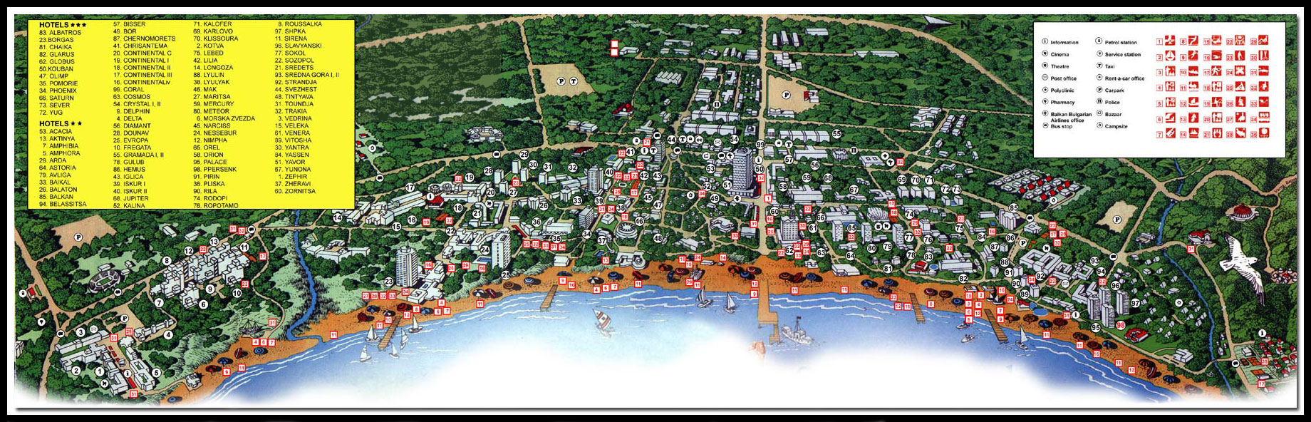 Карта побережья Варны - карта, на которой представлены заливы, бухты, города, пляжи, достопримечательности побережья и другие туристические объекты.