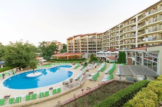 Отдыхали во второй половине сентября 2012 года. Отель понравился, прежде всего некоторой удаленностью от пляжа (до 5 минут ходьбы) и прогулочной зоны, т.к. находиться на второй линии, что в случае “Золотых песков” стоит рассматривать как преим...