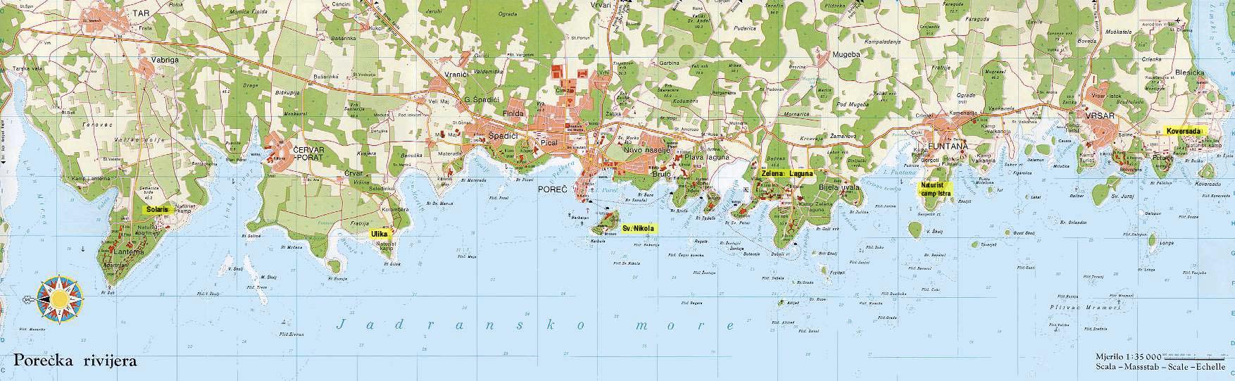 Туристическая карта Пореча - карта, на которой представлены памятники архитектуры страны, места отдыха, музеи, театры, кафе и рестораны.