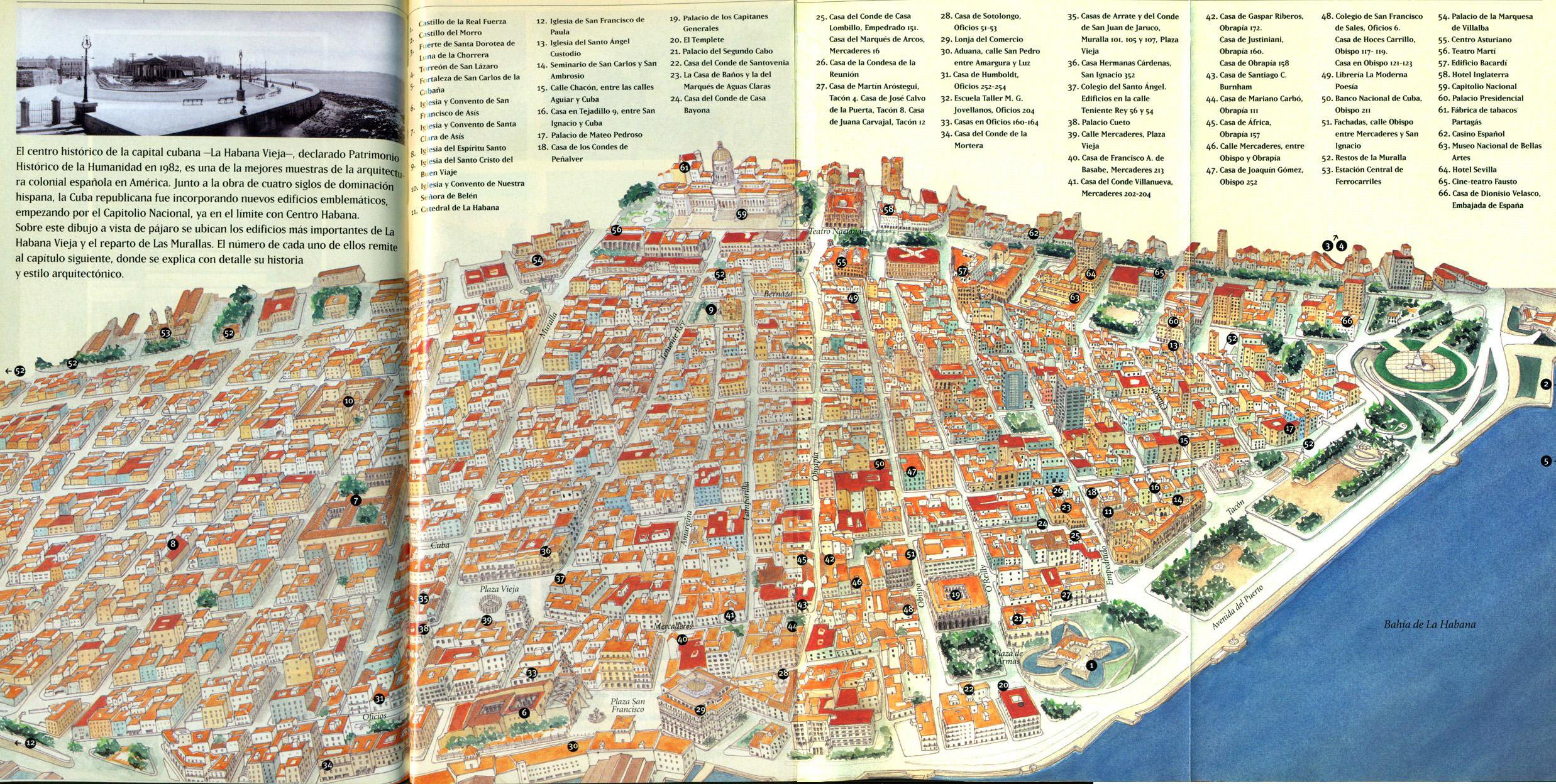 Туристическая карта Гаваны - карта, на которой представлены памятники архитектуры страны, места отдыха, музеи, театры, кафе и рестораны.