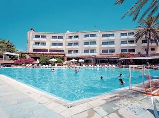 нестандартно очень неплохо и красиво в древнегреческом стиле оформленный отель удачно расположенный в городе на тихой улочке между основными дорогами по которым можно уехать (или уйти) куда угодно,всё чисто и аккуратно, бассейн рядом и окружён зелен...
