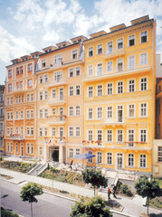 В самом сердце курортной зоны, напротив Мельничной Колоннады, в обрамлении исторических красот Карловых Вар, расположился