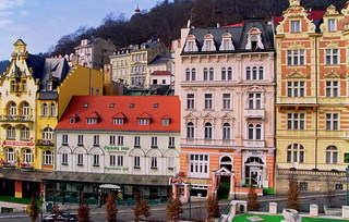 Расположен в центр Карловых Вар, недалеко от "Гранд-отеля Krasna Kralovna Пупп", на набережной реки Тепла.