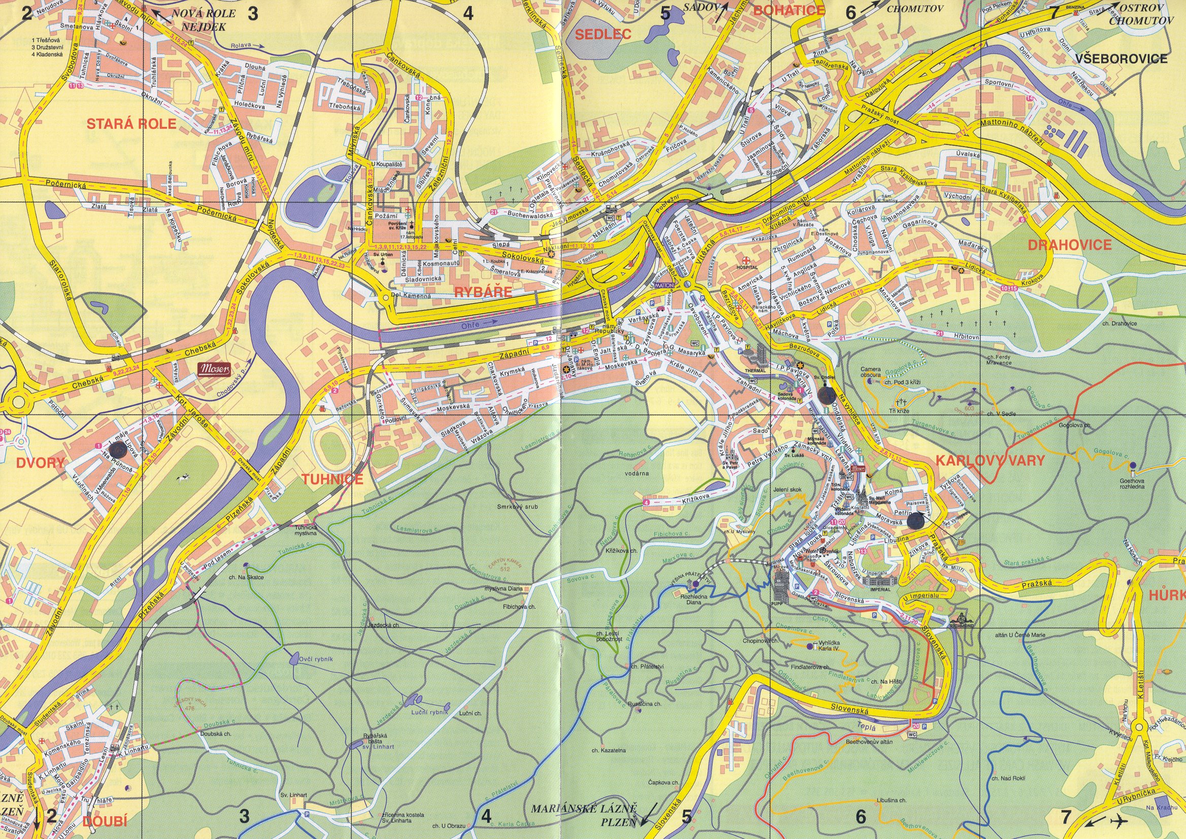 Подробная карта Карловых Вар - карта, на которой подробно изображена местность. Подробная карта содержит сведения о рельефе, городах, населенных пунктах, дорогах, коммуникациях и других объектах местности.