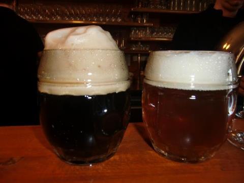 "Новоместский пивовар" - Vodičkova 20. Два сорта пива. Стоимость бокалов: маленький - 28 крон; большой - 38 крон.