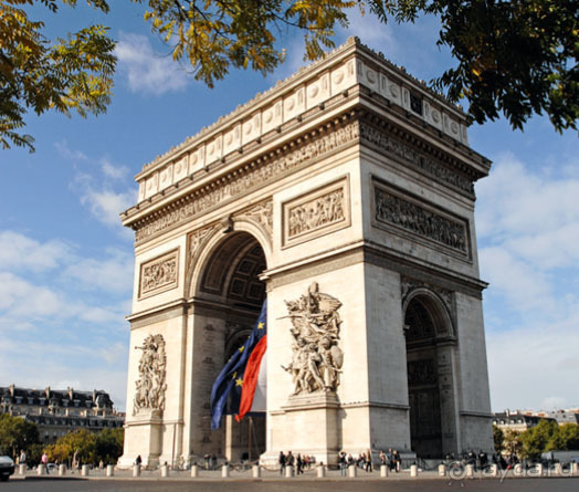 Триумфальная арка — еще один must see Парижа. Возведенная по приказу Наполеона в честь его же военных побед, она стала одним из символов города, благодаря чему поток желающих ее увидеть велик в любое время года. Арка располагается в самом центре площади Шарля де Голля, от которой в виде лучей расходится 12 проспектов, один из которых именуется Елисейскими полями. На самом деле, Елисейские поля — достопримечательность больше разрекламированная, нежели интересная, — впрочем, если речь не идет о шопинге, поскольку вдоль этого проспекта сконцентрировано неимоверное количество разнообразных магазинов всех известных мировых брендов. Пройдя до конца Елисейских полей — то есть всего два километра, если считать от площади Шарля де Голля, путешественник оказывается на площади Согласия. Каждому, кто знаком с историей, известно, что именно здесь когда-то проходили казни времен Французской революции, — причем как свергнутых правителей, так и ее идеологов. Сегодня центральное место на площади занимает Луксорский обелиск, созданный в Древнем Египте и подаренный Франции в середине XIX века.