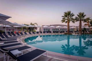 Отдыхали на Родосе в первой половине сентября. Отель находится на горе, поэтому помимо красивых видов бывает очень ветрено. Территория небольшая, но очень зелени. На море ходили пешком 20 минут, но можно и ездить на маршрутке от отеля.Питание отлично...