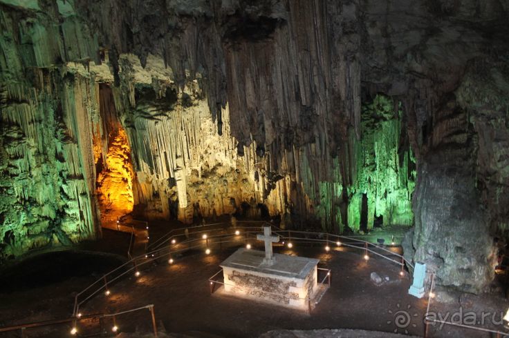 Пещера Сфендони – естественная полость, образовавшаяся в горе на высоте 800 м. Ее общая площадь достигает 3,5 тысяч кв. м, а протяженность ходов составляет 550 м, из которых для осмотра посетителями о...