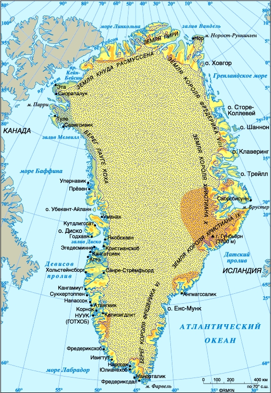 Подробная карта Гренландии - карта, на которой подробно изображена местность. Подробная карта содержит сведения о рельефе, городах, населенных пунктах, дорогах, коммуникациях и других объектах местности.