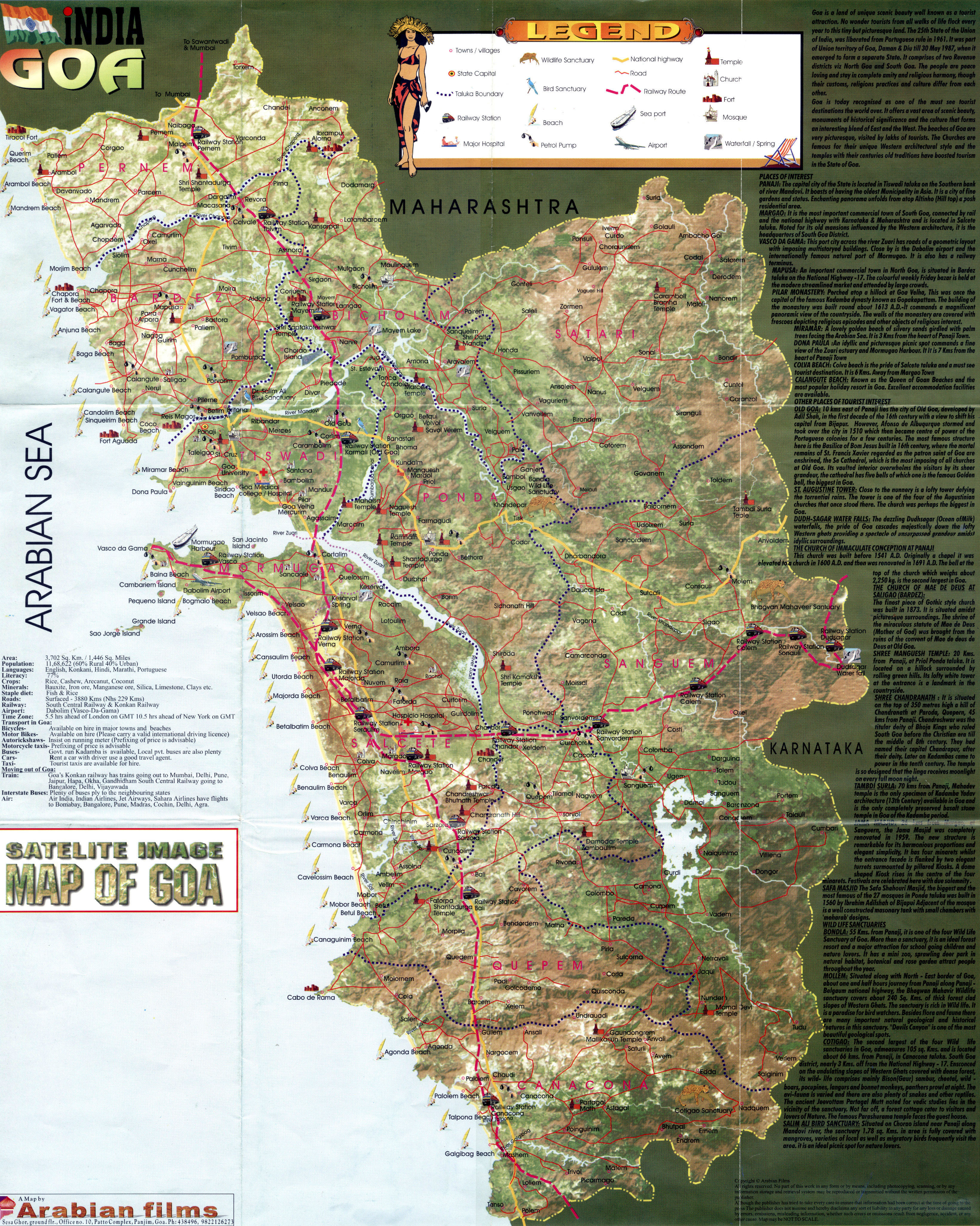 Подробная карта Гоа - карта, на которой подробно изображена местность. Подробная карта содержит сведения о рельефе, городах, населенных пунктах, дорогах, коммуникациях и других объектах местности.
