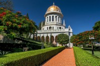 Хайфа, где расположена усыпальница Баба. В усыпальнице, созданной в 1953 году по проекту архитектора Уильяма Максвелла (после смерти Максвелла в 1952 году строительством руководил Х. Нойман), покоится прах основателя веры бахаи, вывезенный из Тевриза его последователями. Купол усыпальницы имеет простую классическую форму; он опирается на барабан диаметром 11 метров. В барабане 18 окон, по числу самых первых учеников пророка. Купол покрыт черепицей различной формы (50 вариаций, 12 тысяч фрагментов). Ночью, когда включены прожектора, возникает ощущение, что свет идет изнутри купола.