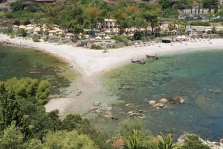 Отель расположен на берегу моря. Но буквально в 50 метрах от отеля фуникулер, который за 5 мин. Доставляет в прекрасный город Таормину. С фуникулера во время движения открывается вид на бухту, очень красиво. Территории практически нет. Сразу из отел...