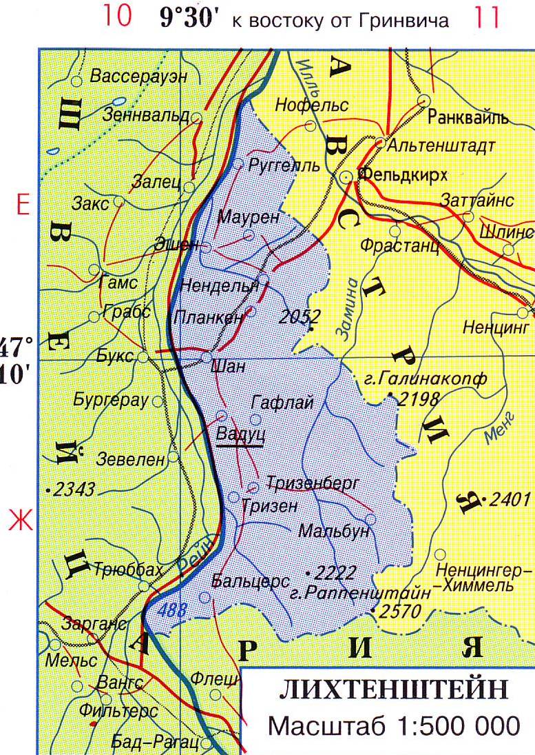 Карта Лихтенштейна с городами и курортами