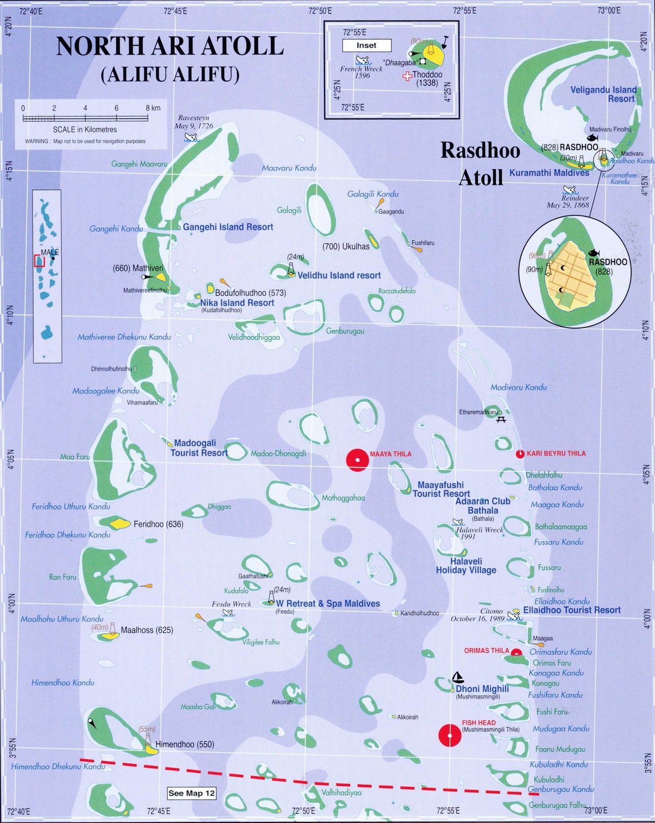 Подробная карта Ари Атолла - карта, на которой подробно изображена местность. Подробная карта содержит сведения о рельефе, городах, населенных пунктах, дорогах, коммуникациях и других объектах местности.