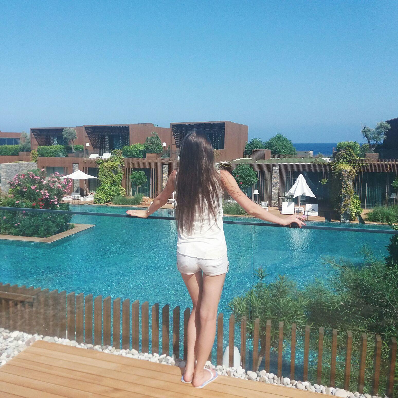 Вода в море чистая, вход есть как с пирса так и с небольшого собственного песчаного пляжа, который имеет пологий вход, что удобно для отдыха с детьми. Лежаки есть как на деревянных понтонах и пирсе, так и на пляже и у бассейнов.