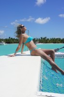 Тез тура Сергей начал свой рассказ про доминикану, её жителей и сувениры. По пути пути мы остановились в каком-то придорожном магазинчике, где продавалась (со слов доброго Сергея) последняя бутылка старинного рома, выдержки более 100 лет. "Синяя бутылка" - сказал Сергей. Порадовало, что в нашей группе не нашлось лохов. Ещё добрый Сергей рассказывал про разные сувениры, про страну, про нравы. Очень много он уделил внимания тому, какие доминиканцы бедные люди, как им тяжело живется, и какие они мастера в сексе. После его рассказа хотелось зарыдать и отдать все, что имею бедным доминиканцам. После довольно длительной езды, наконец-то приехали на берег Карибского моря. Нужно отметить, что волн не было видно, и это меня порадовало. Естественно, первое, что мы сделали, это сели в моторную лодку и поплыли. Хорошо, что ребенок оценил ситуацию и не устроил проблем. Приплыли мы на доволно убогий моторный катамаран (заявлен был парусный, закрытый) и поплыли. Плыли, плыли. Пока плыли включили какую-то испанскую попсу, не этническую музыку, вывели двую толстожопых африканок и заставляли всех танцевать. Параллельно наливали всем ром. Суть этого действия состояла в том, чтобы всех напоить, и заставить танцевать с крутящими жопами негритянками. Частично это удалось, часть публики которая хорошо поддала восприняла ритмы и вовсю веселилась. Затем мы подплыли к острову и нам дали 40 минут чтобы поплавать в кораллах. В это время рядом было много кораблей, которые норовили проплыть как можно ближе к плавающим людям. Должен сказать, что стоить поплавать и посмотреть есть на что, но почему-то возле берега было довольно сильное волнение и трубку постоянно забрасывало.