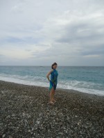 Пляж песчаный, при входе в воду встречаются камни, потом песок. Море чистое, вид слева - супер! Горы впечатляют, особенно на закате.