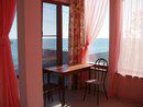 номера имеют панорамные окна, открывающие вид на побережье, на поселок, на вершины гор. Есть номера, оснащенные не только душем, ванной, туалетом, но и биде. Интерьер гостиницы совершенно новый, свежие стены, кровати, сантехника. Уборка ежедневно. При необходимости можно заказать дополнительное спальное место. Номера рассчитаны на семейный отдых (3 спальных места) или на комфортный отдых для двоих (номера с 2 кроватями или одной двуспальной кроватью)