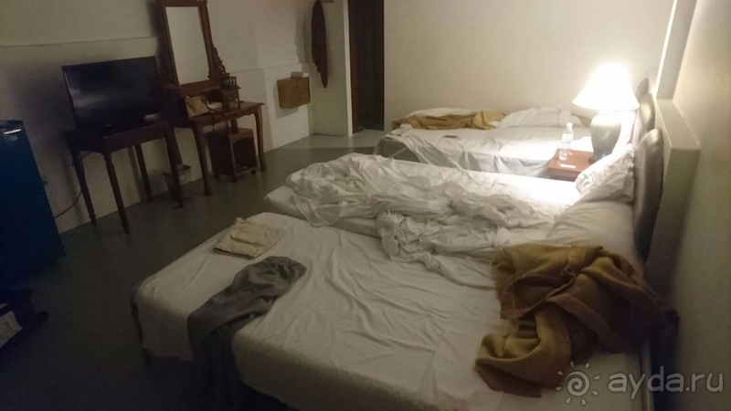 Русских заселяют в отдельный корпус с маленьким бассейном на самом верху. Все вокруг одного квадратного бассейна. В общем, народ, компании, которая приехали побухать, не дают отдохнуть, т.к место только вокруг бассейна и всё слышно. Слышимость в номерах отличная, шумоизоляции ни какой. Некоторым удавалось поменять номер на основной корпус (он чуть лучше, но за доп. плату от 300 батт (650рублей) за сутки. (за такие деньги я бы себе 3++/4звезды отель бы снял.)