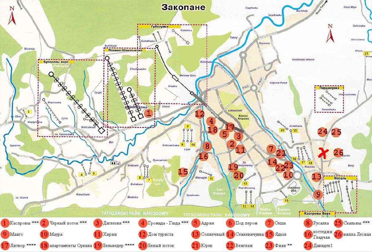 Отели Закопане на карте
