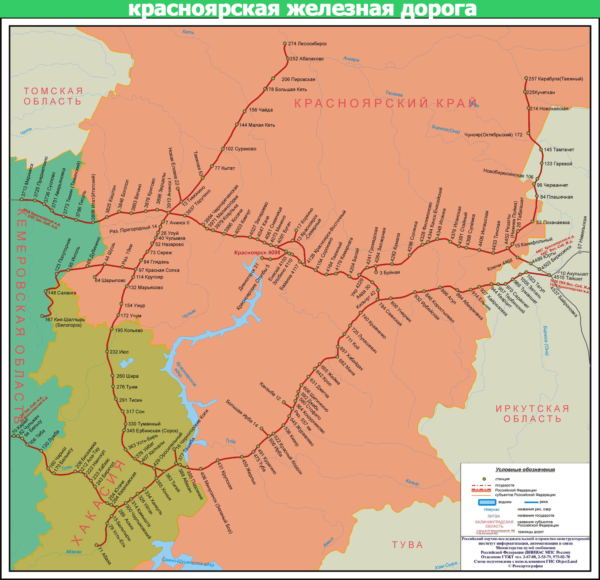 Карта городского транспорта Красноярска - карта, на которой графически отображены все ветки и станции городского транспорта, указаны узловые станции для пересадок на другие ветки.