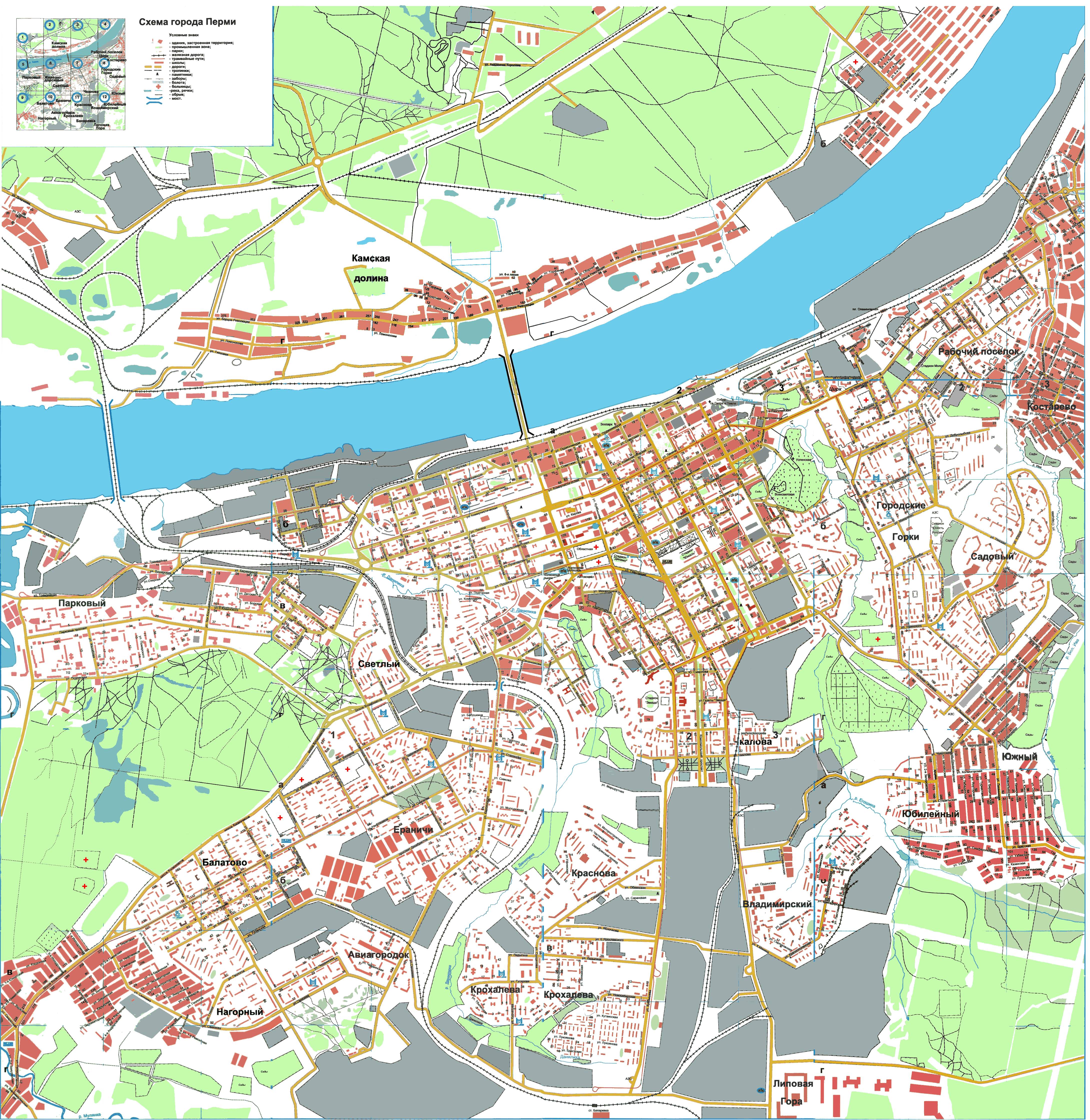 Подробная карта Перми - карта, на которой подробно изображена местность. Подробная карта содержит сведения о рельефе, городах, населенных пунктах, дорогах, коммуникациях и других объектах местности.