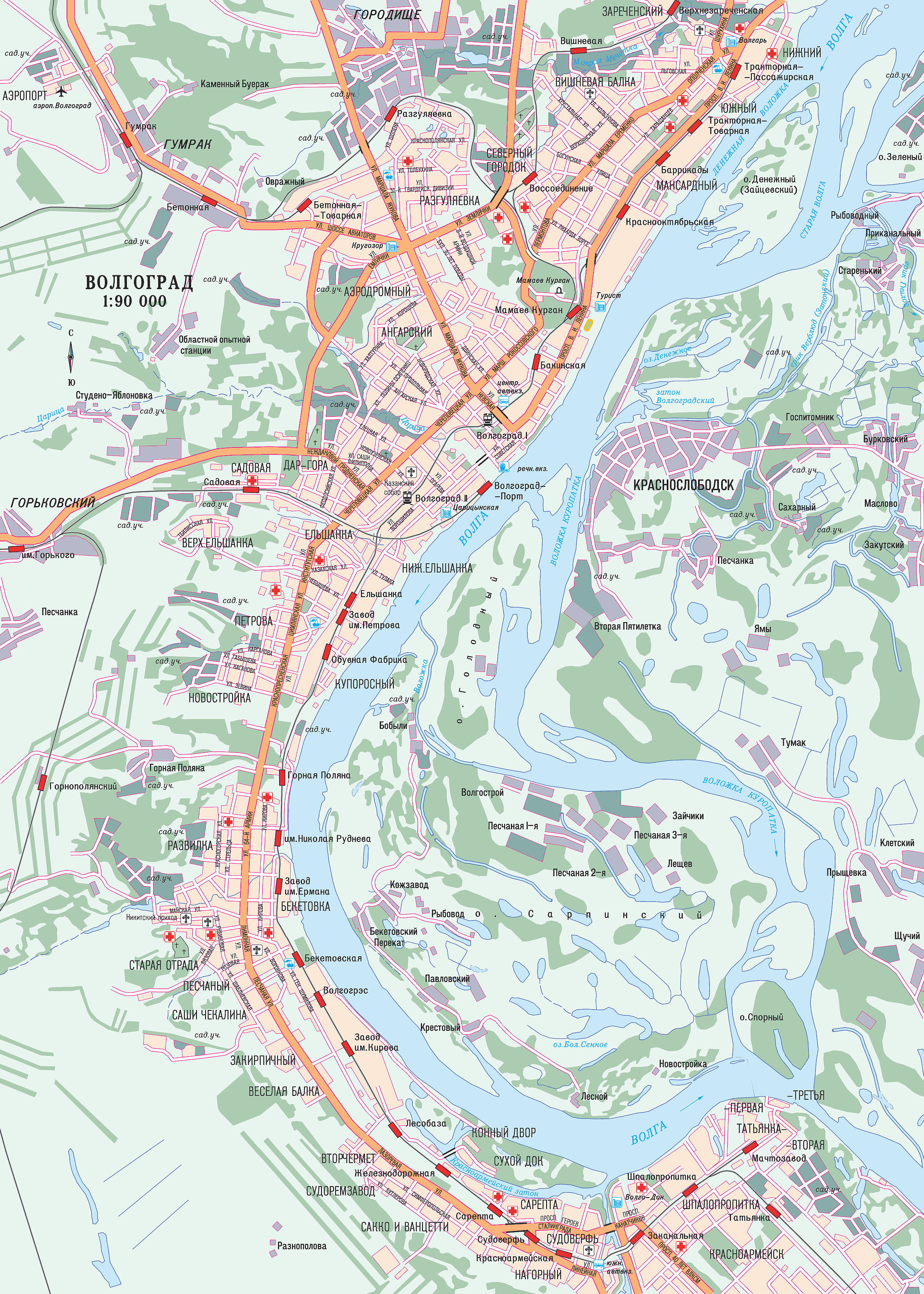 Подробная карта Волгограда - карта, на которой подробно изображена местность. Подробная карта содержит сведения о рельефе, городах, населенных пунктах, дорогах, коммуникациях и других объектах местности.