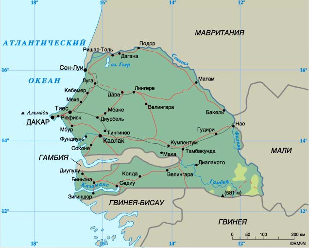 Карта Сенегала с городами и курортами