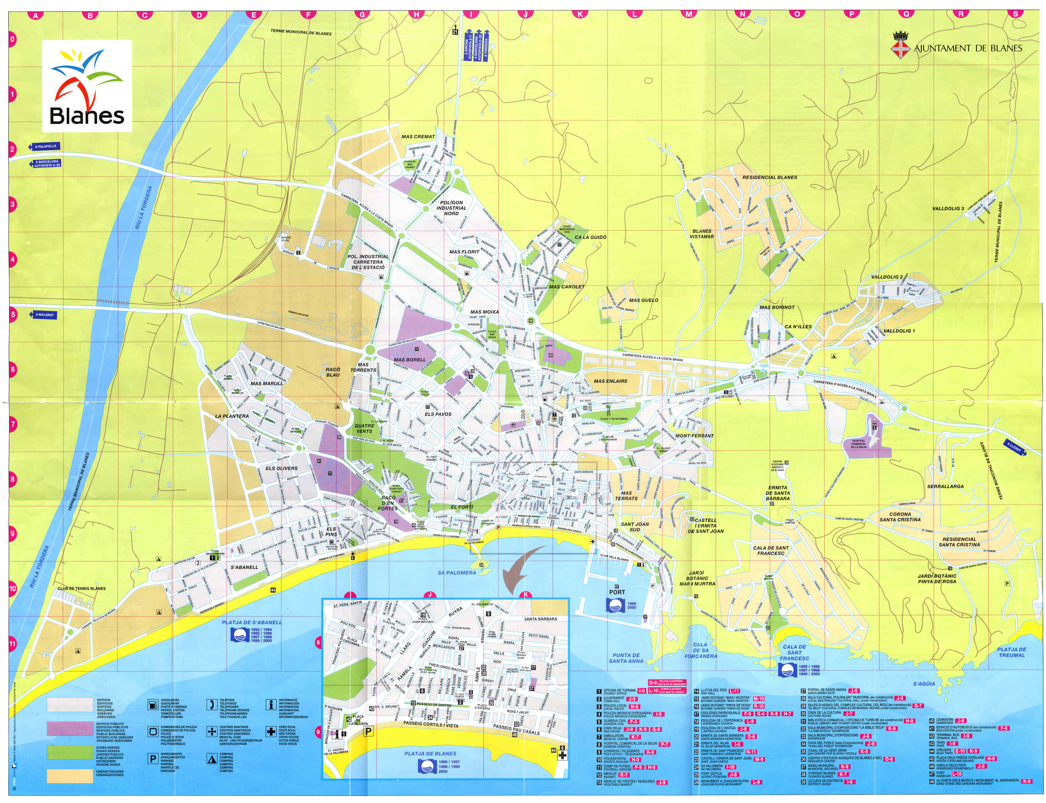 Туристическая карта Бланеса - карта, на которой представлены памятники архитектуры страны, места отдыха, музеи, театры, кафе и рестораны.