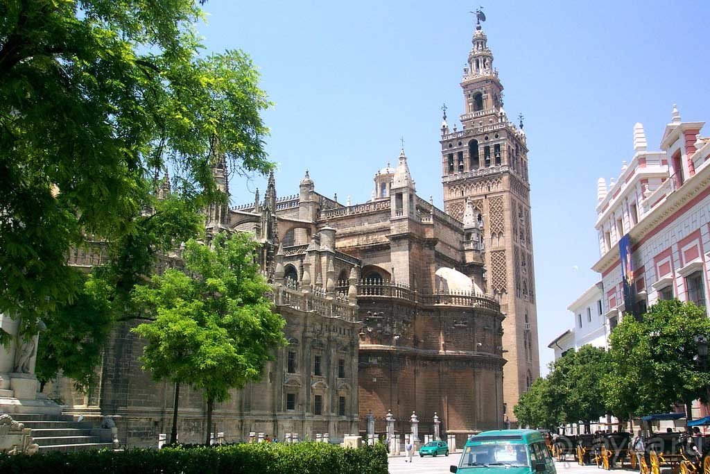 Среди старого города Севильи как исполин стоит Собор Мария-де ла Седе, построенный в 1401—1519 гг. на месте бывшей мечети. Имея около 116 м в длину и 76 м в ширину, кафедральный собор Севильи является третьим по величине христианским собором в мире (...
