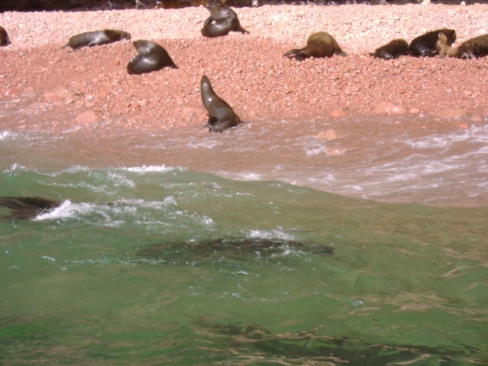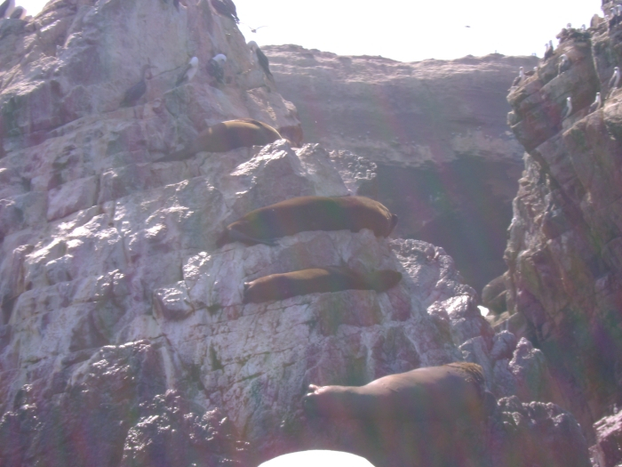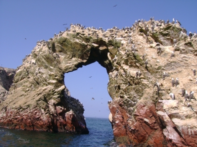 Пытаюсь объяснить стюардессе, что я не знаю, как выглядит Сан Клементе, и что было бы здорово, если бы она мне сказала, когда мы там будем. Не понимает. Хмм…. Вроде достаточно простая просьба, хотя, конечно, жестами объясняться сложно на абстрактные темы. Достаёт телефон, звонит куда-то, даёт мне трубку. В трубке кто-то пытается говорить по-английски. Понимание снова не приходит – пытаются мне объяснить, как добраться от Сан Клементе до Паракаса. Блин, то ли я дурак, то ли ещё кто… Нахожу пассажира, говорящего по-английски, объясняю, чего хочу, он объясняет это стюардессе. Причём его эта идиотка тоже не сразу поняла, хотя он с ней по-испански говорил. Приезжаем в Сан Клементе. Пыльная дыра в пустыне, несколько грязных улиц вокруг перекрёстка. Сажусь в маршрутку до Писко. Проезжаем пару километров, и на развилке (поворот с Панамериканы на Писко) маршрутка ломается. Блин. Ну ладно. Тут вокруг развилки примерно такая же деревушка, как и Сан Клементе, есть рынок и несколько забегаловок. Зашёл в одну из них, оранжевую такую, покушал. Не делайте этого!!! Почему, позже поймёте. Выхожу, еду на маршрутке в Писко. Минут 30 шарахаюсь по улицам. На редкость отвратный городишко, соперничать с ним по неуютности в Перу может разве что Хулиака. Еду на маршрутке в Паракас (километров 20 ехать).Паракас – маленький, чисто курортный посёлок. По перуанским меркам весьма чистый и опрятный. Куча турагенств, в которые туриста активно пытаются заманить. Приехал я около 15 часов, сразу на причал. Увы, катерные экскурсии к островам отправляются два раза в день – в начале девятого и в начале двенадцатого. Придётся ночевать. Гостиницу нахожу без проблем, их тут куча. Иду покупать обратные билеты назавтра (как показала практика, озадачиться этим лучше сразу по приезду. А ещё лучше взять обратный билет при покупке билета сюда. В 16 часов, когда я пришёл на автостанцию, на следующий день оставалось всего три билета). Автостанция находится метрах в 400 от Паракаса, возвращаетесь назад по дороге к перекрёстку с неработающим фонтаном и статуями цапель, и заходите через ворота на территорию чего-то среднего между лесопилкой, складом и автомастерской. Это и есть автостанция. Билет на завтрашнюю экскурсию беру прямо в гостинице. Сколько стоил – не помню, но недорого. Иду купаться. На пляже полно народу, узкая полоска тёмного песка забита тушками отдыхающих. Оставляю вещи на попечение загорающего перуанского семейства и бултыхаюсь. Море, как ни странно, заметно теплее, чем в Трухийо, плескался минут 40. Вдруг с берега крики. Смотрю – большая волна залила весь пляж, народ мечется по берегу, спасая свои вещи. Блин! Выбираюсь на сушу. Ура! Перуанцы свои вещи от воды уберегли не все, но оставленное им на попечение спасли. Молодцы! Ставлю главе семейства бутылку пива. Иду в интернет-клуб, где получаю с Родины порцию энергичных наставлений быть поосторожнее.Самочувствие, тем временем, что-то не ахти. Болит живот и тошнит. Т.к. за весь день кушал я один раз, в забегаловке на перекрёстке, логичным представляется вывод, что там и траванулся. Побродил немного по вечерней набережной,