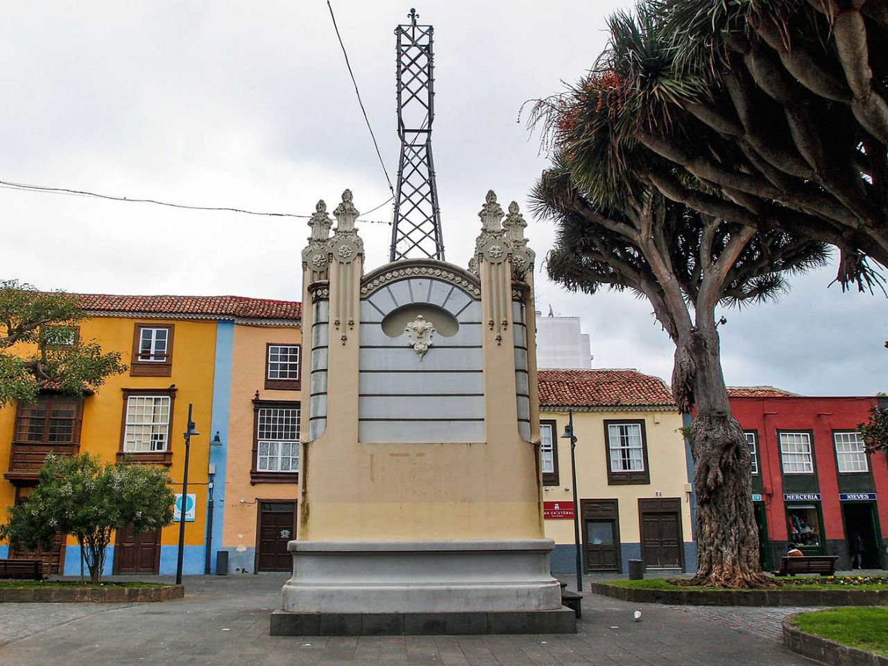 Пожалуй, эта башня и площадь перед ней запомнились мне в Ла Лагуне особенно ярко. Площадь Консепсьон (Plaza la Concepcion) имеет форму вытянутого треугольника, посреди которого находится небольшой сквер со множеством лавочек.
