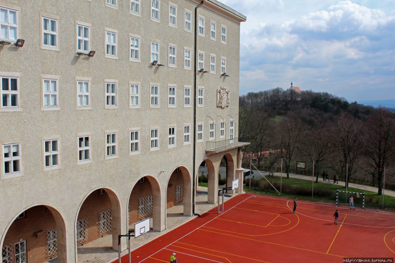 Плюс вплотную к стенам монастыря подходит современная спортивная площадка. Сейчас, кроме монастырской общины (а здесь постоянно проживает около 50 монахов), в аббатстве работает бенедиктинский колледж для мальчиков, где, по видимому, немалое внимание уделяется физической культуре...