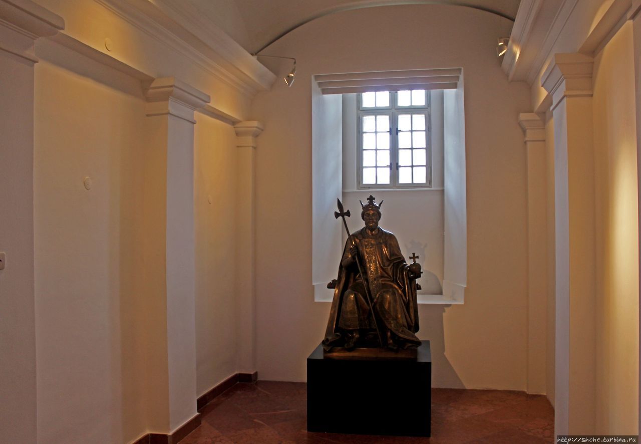А перед нами первая развилка, на которой нас встречает не дорожный камень с надписью, а памятник первому королю Венгрии Иштвану I Святому.
