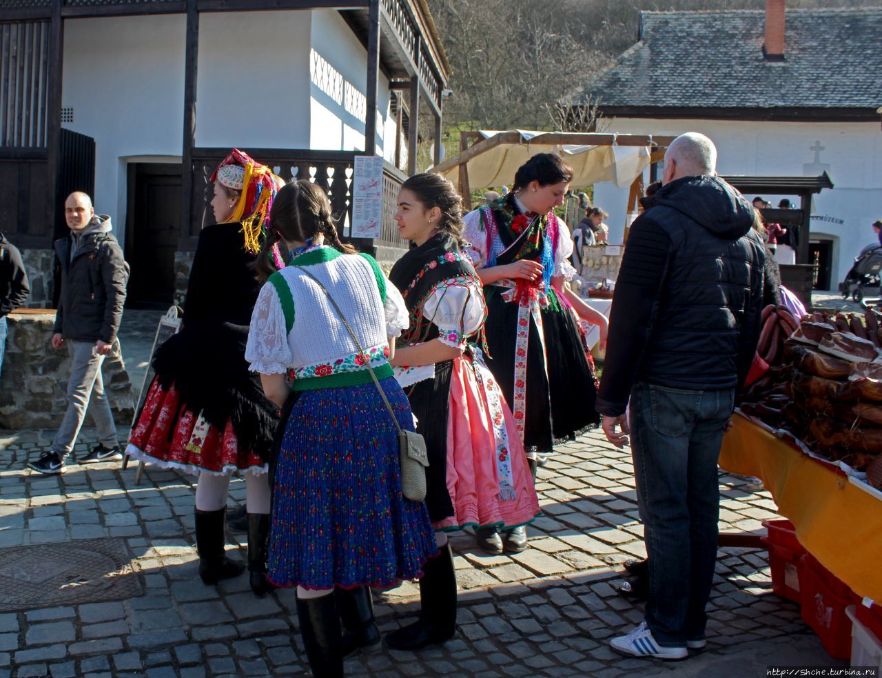 Уже приближаясь к Холлоке я понял, что не какое-то происшествие заставило полицейских перекрыть нам путь с юга. Более того, если бы ехали парой часов ранее, то и с севера нас наверняка бы не пустили. Причина была в том, что это был первый после католической пасхи понедельник. Это большой религиозный праздник, и в этот день в Холлоке проходил ежегодный этнографический фестиваль. Более чем за пять километров до села с обеих сторон обочины дорог были плотно заставлены машинами посетителей, и полиция просто перекрыла доступ для "опоздавших".