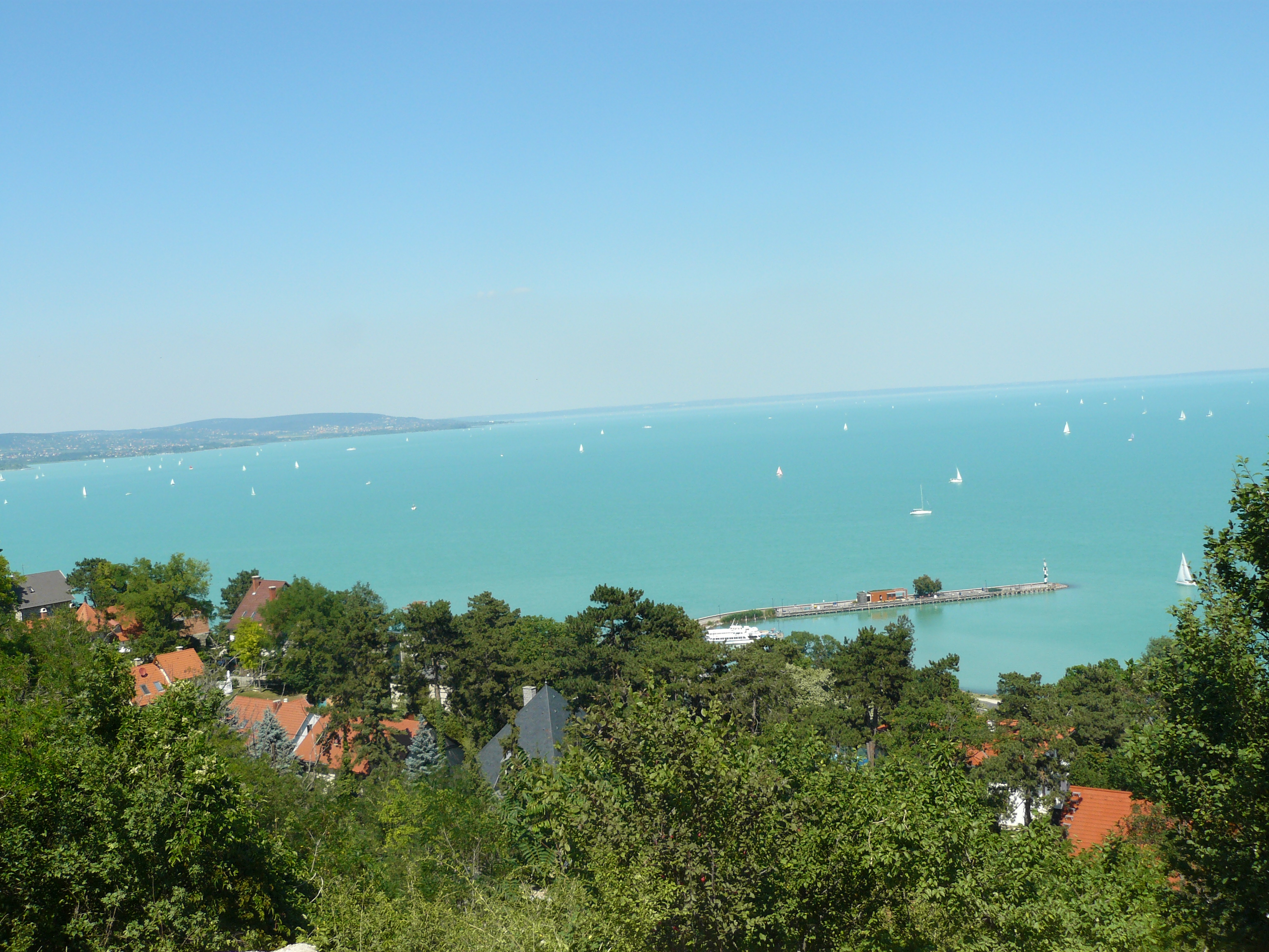 У подножия церкви смотровая площадка над Балатоном. Белые яхты и лодки, скользящие по голубой глади воды, планирующие в воздухе чайки, и покой, тишина… - ни с чем не сравнимая тиханьская панорама на восточную часть озера Балатон.