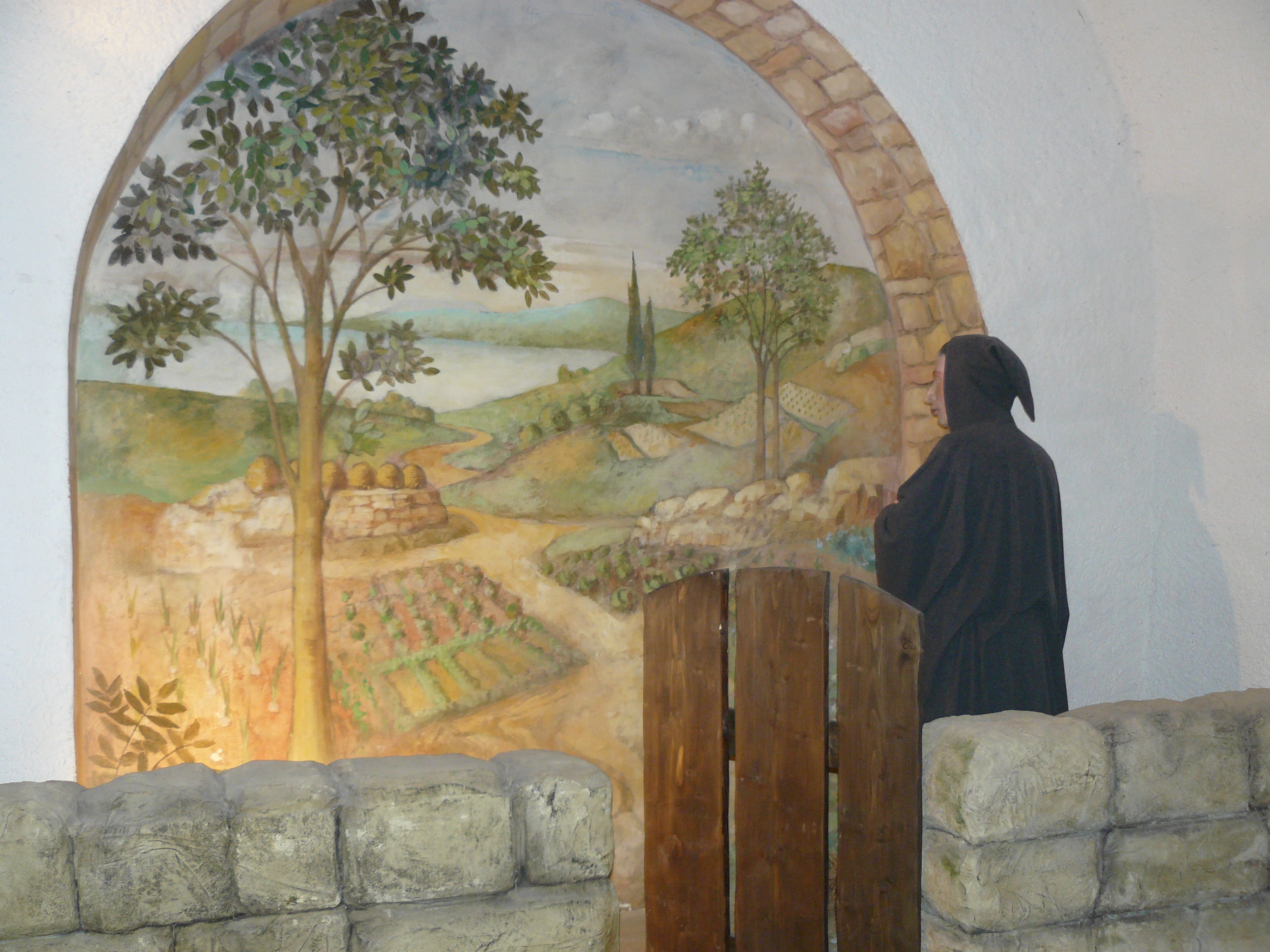 Роспись стен - современная, отображает быт монахов давних времен. Кажется, что можно посидеть в необычном трактире за столом с монахами, такая необычная «диорама» для туристов.