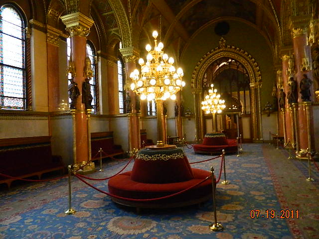 С 1 января 2000 года - 1100-летие государственности Венгрии, в парламенте хранится корона святого Стефана вместе со скипетром, державой и мечом. Возраст короны более тысячи лет. Корона состоит из трех частей: нижняя — греческая корона, верхняя — латинская корона. Верхняя - в виде шлема из золотых пластин более старая. Одна версия гласит, что ее передал Римский Папа Сильвестр II для коронации первого христианского Монарха Венгрии Иштвана в 1001 году и была возложена папским легатом на голову Иштвана I при провозглашении его королем. Другая утверждает, что это сделал Император Священной Римской Империи Оттон III.