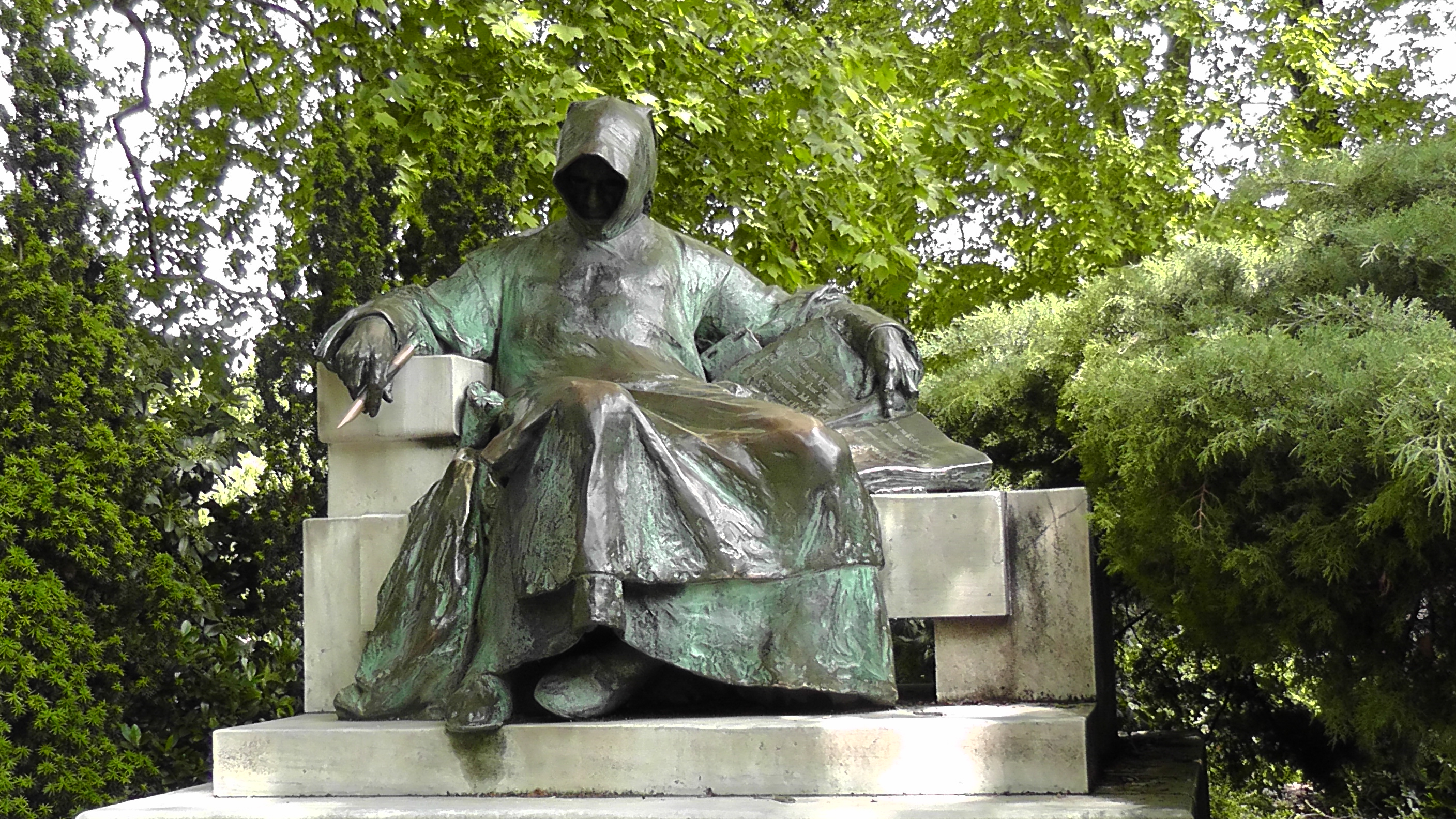 Памятник в прямом смысле «анониму», так как увековечен неизвестный автор известного произведения - «Деяния венгров» (Gesta Hungarorum). В 57 главах он описал древнюю историю венгров и привел перечень их племенных вождей. Это очень важный для государства Венгрии исторический документ. Как же случилось, что затерялось имя, однако, затерялось. Есть версии, что он был монахом в часы короля Белы III, который правил с 1172 по 1196 года. Однако, это скорее относится к самому манускрипту, определению его эпохи. А самим автором называют и епископа Дьёрского Петера, и другого епископа, и даже нотариуса при дворе Белы IV, по имени. то ли фамилии Поус. Труд неизвестного автора был переведен с латыни лишь спустя 600 лет после написания, и в настоящее время является одним из основных источников о том периоде венгерской истории.