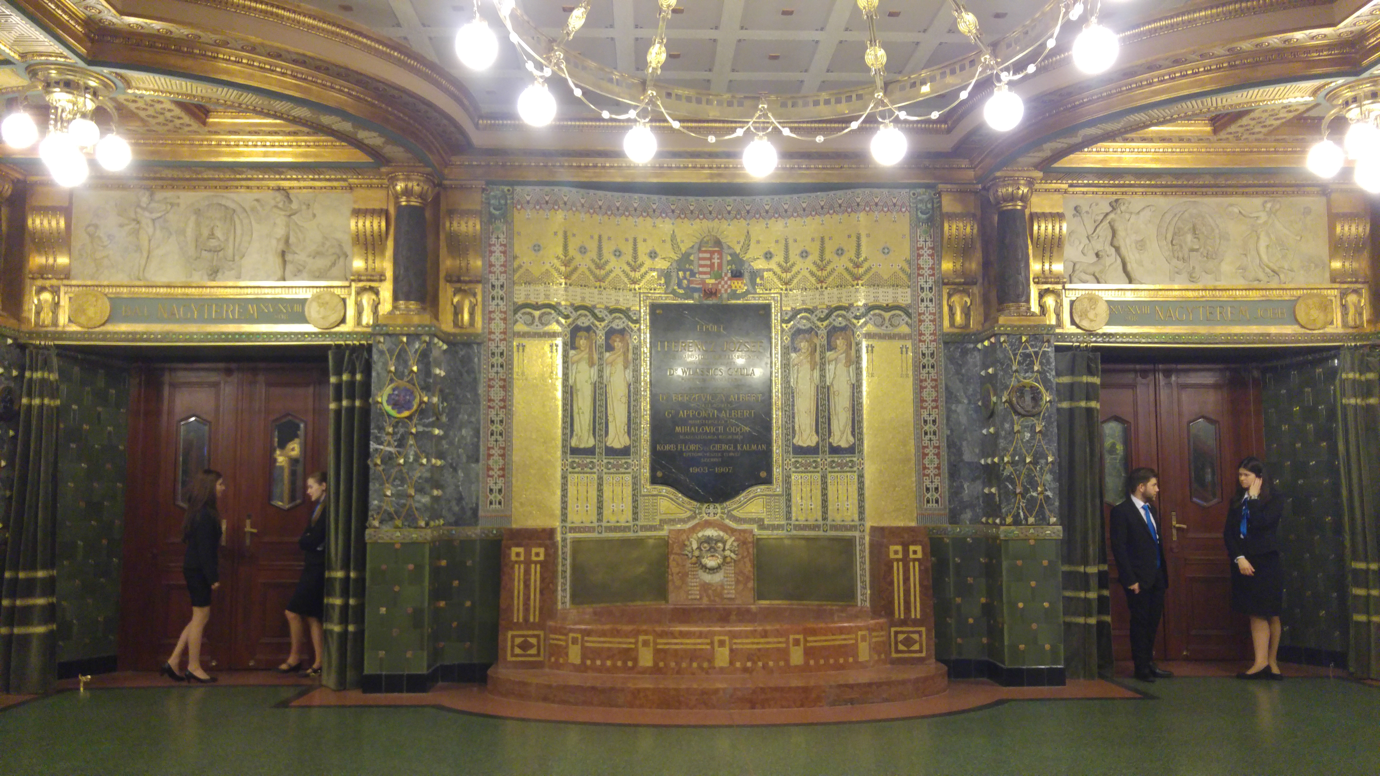Внутренний интерьер академии оформлен в стиле сецессион, который был модным в Будапеште на границе 19 и 20 веков.