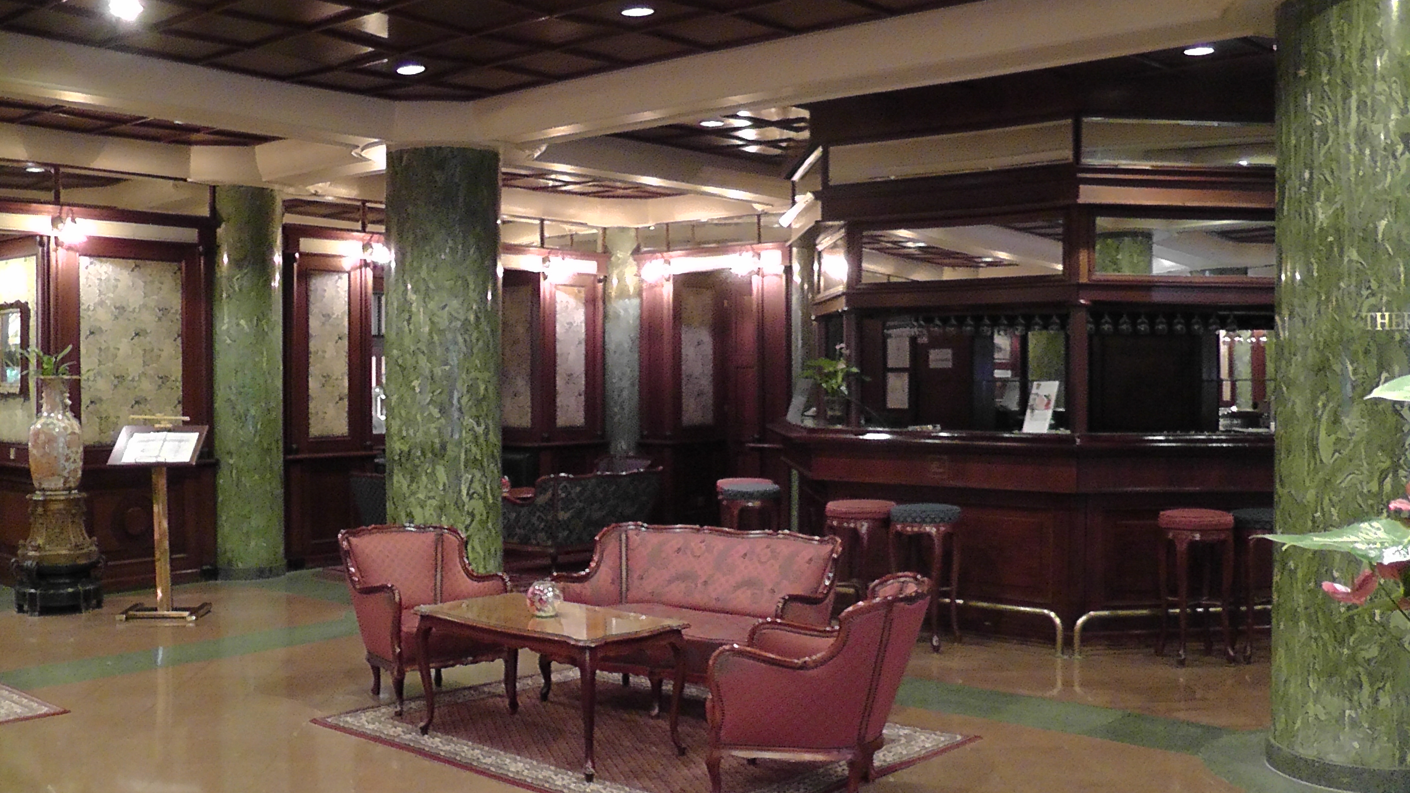 В холле отеля впечатляет старина. Мраморные колоны глубокого зеленого цвета и деревянные панели. Удобные кресла и диваны.