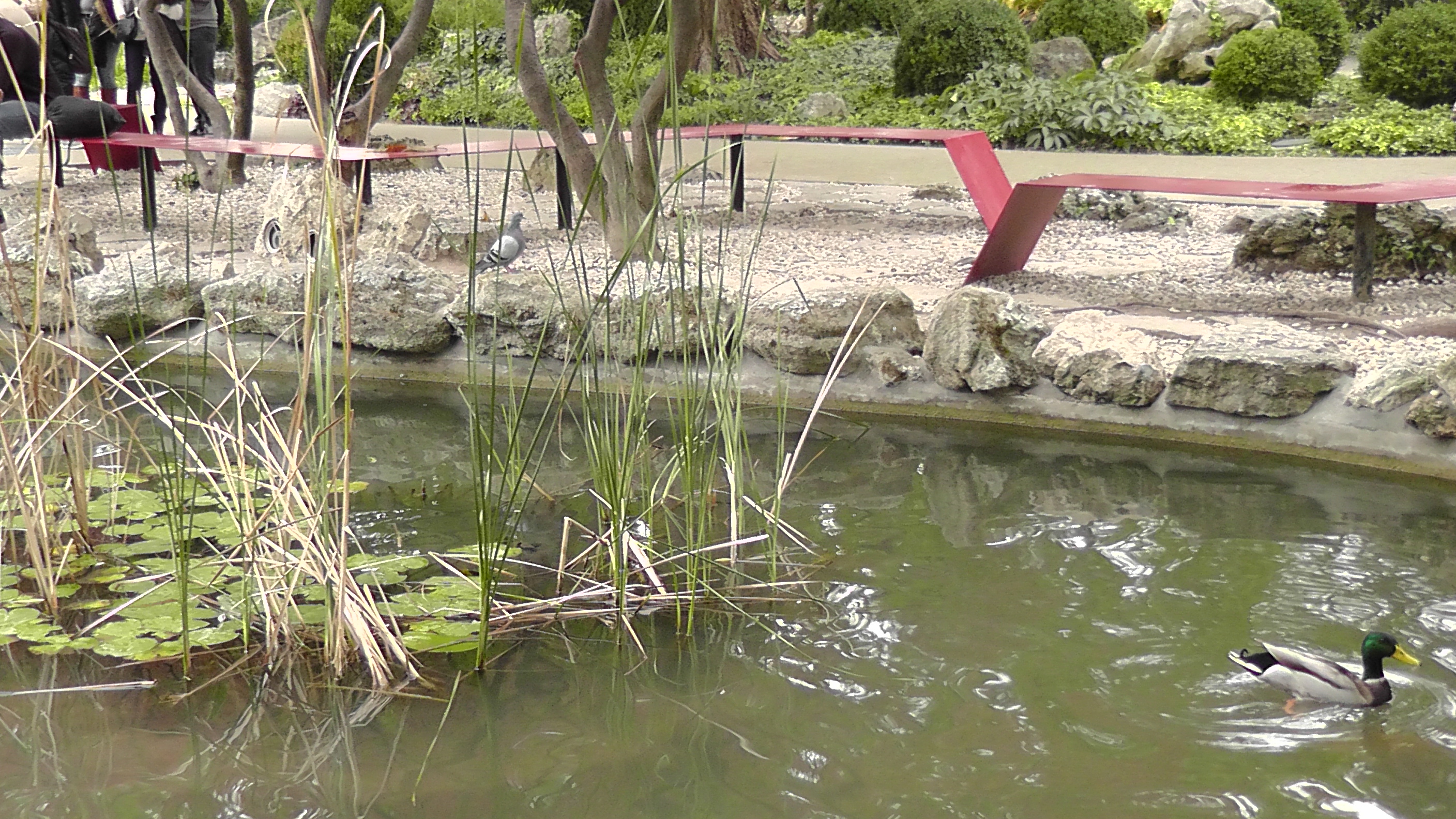 Водоем, вокруг которого разбили японский садик, не замерзает даже зимой, поскольку питается термальными водами из местного источника. Есть самый настоящий водопад, красивой стеной стоящей над прудом.