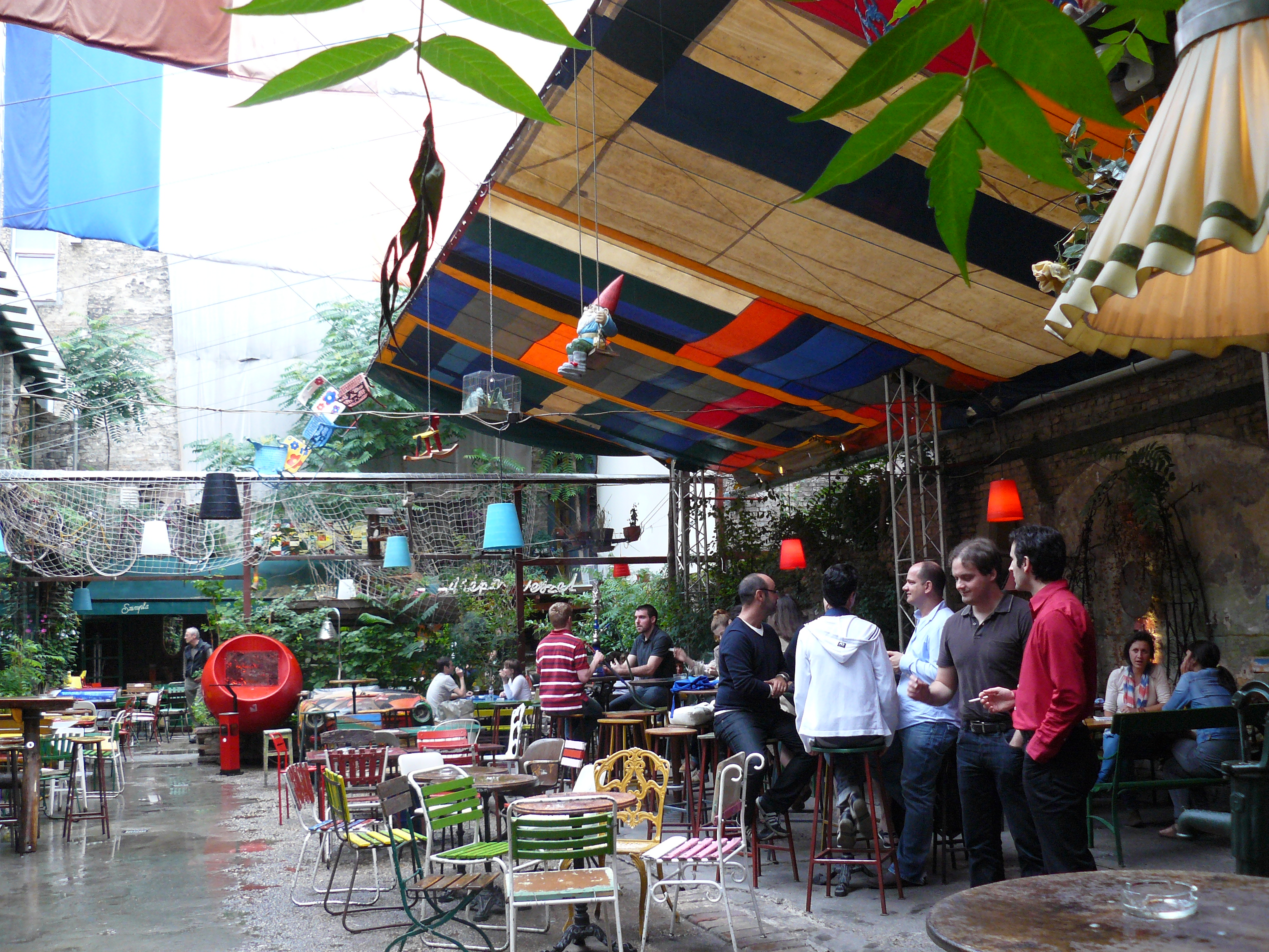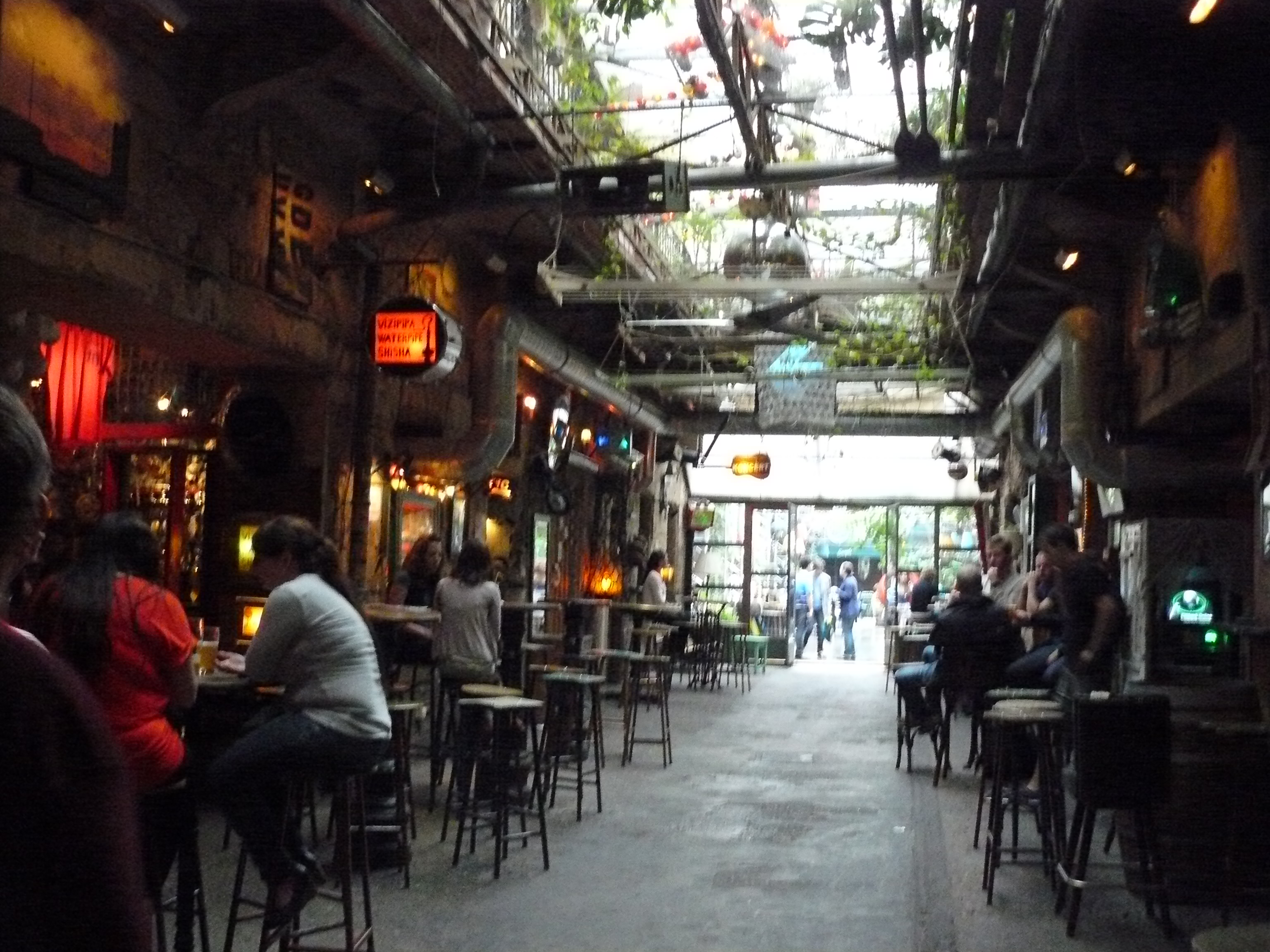 Ради таких пабов в Будапешт съезжаются на вечеринки люди со всей Европы, не потому что здесь дешевле, чем в Париже или Брюсселе, а потому что атмосфера необыкновенная. Здесь можно встретить колоритных персонажей и медийные лица, выпить крафтового пива, ощутить дух свободы и протеста. Потому Симпла Керт открыл недавно филиал в Берлине. Думаю, там нет проблемы с антуражем "после бомбежки". Есть последователи и в самом Будапеште, открывают новые руин-бары, например, на крыше бывшего универмага устроили Corvintető (Corvin Roofgarden). Паб Iskola-«Школа» открыт в здании бывшего учебного заведения. Всего из несколько в разных районах города. «Симпла» из них самый большой бар. Говорят, есть специальные автобусы курсирующие по городу, готовые бесплатно отвезти в один из модных клубов. Так и стали руин-бары визитной карточкой Будапешта.
