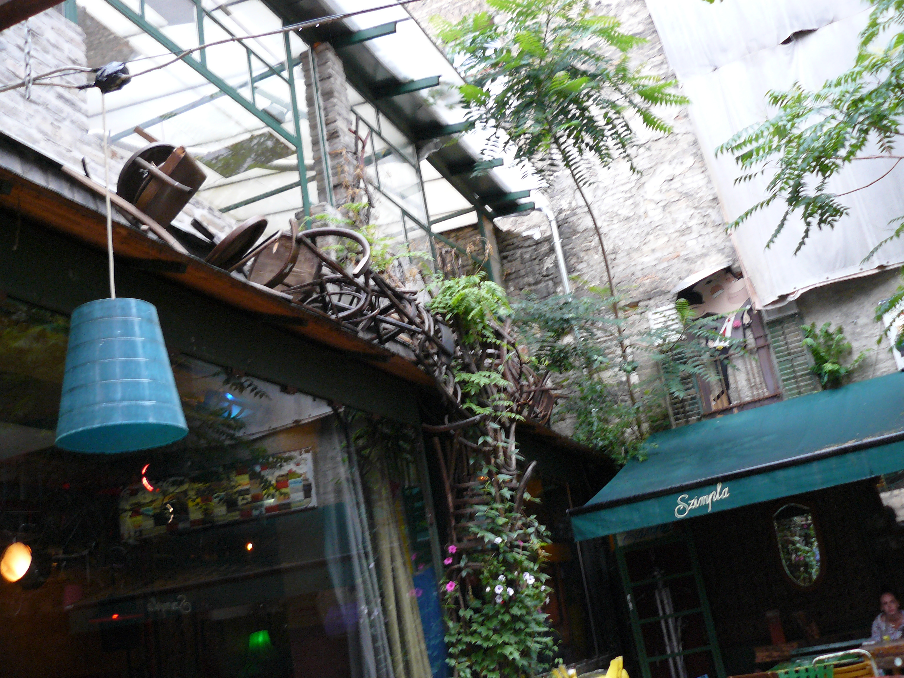 Недалеко от синагоги, как ориентира в поисках, находится точка притяжения множества туристов и самих будапештцев - руин-бар Симпла. Он был первым среди руин-пабов Будапешта, создан в 2001 году, когда мэрия не смогла найти деньги на ремонт грозящих упасть на головы прохожим домов, и разрешила арендовать желающим заброшенные дома. Первыми отозвалась местная молодёжь, арендовали несколько зданий и почти ничего не ремонтируя в них, открыли тут бары.