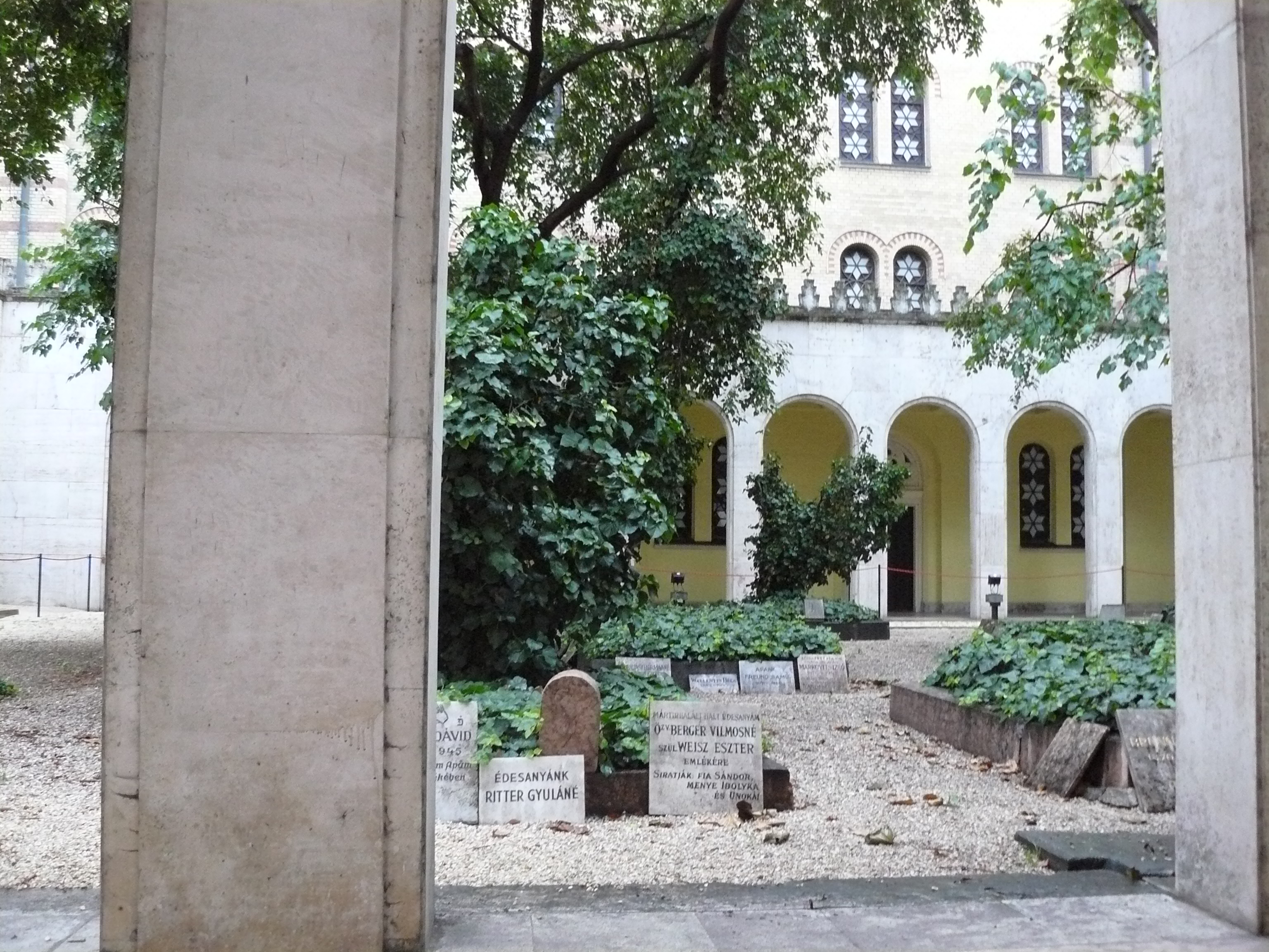 В иудаизме не принято хоронить своих умерших рядом с синагогами, но в Будапеште такие захоронения есть. Во время Второй мировой войны район синагоги и прилегающие улицы были еврейским гетто, не было возможности вывести тела на настоящее еврейское кладбище, поэтому пришлось закапывать во дворе синагоги.