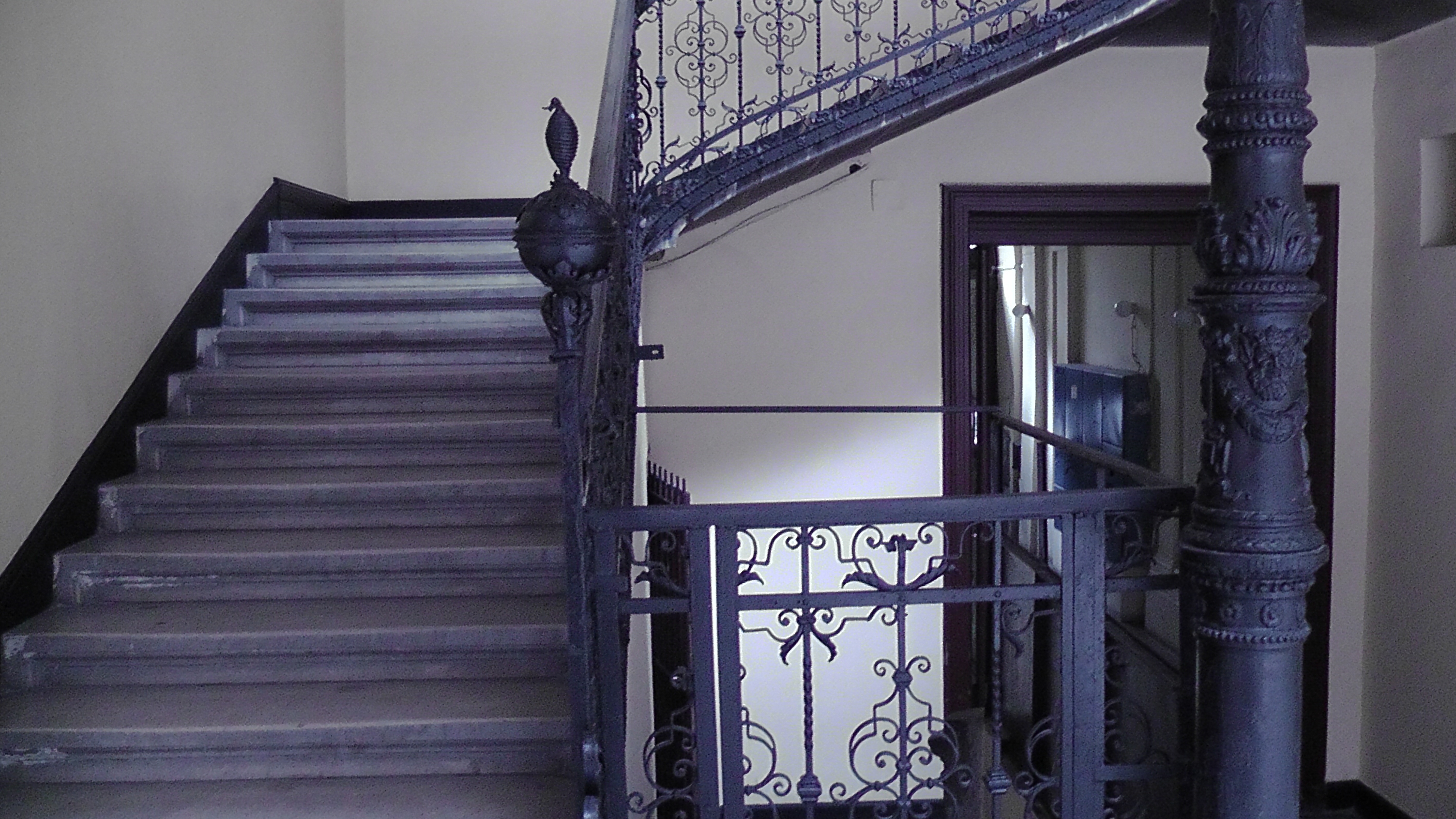 Парадные лестницы встроены внутри подъезда , если можно так сказать про эти дома. И являются украшением - ажурное кружево ограждений, витые колонны поддерживающие лестницы. Плюс внушительные двери с решетками на галереях.